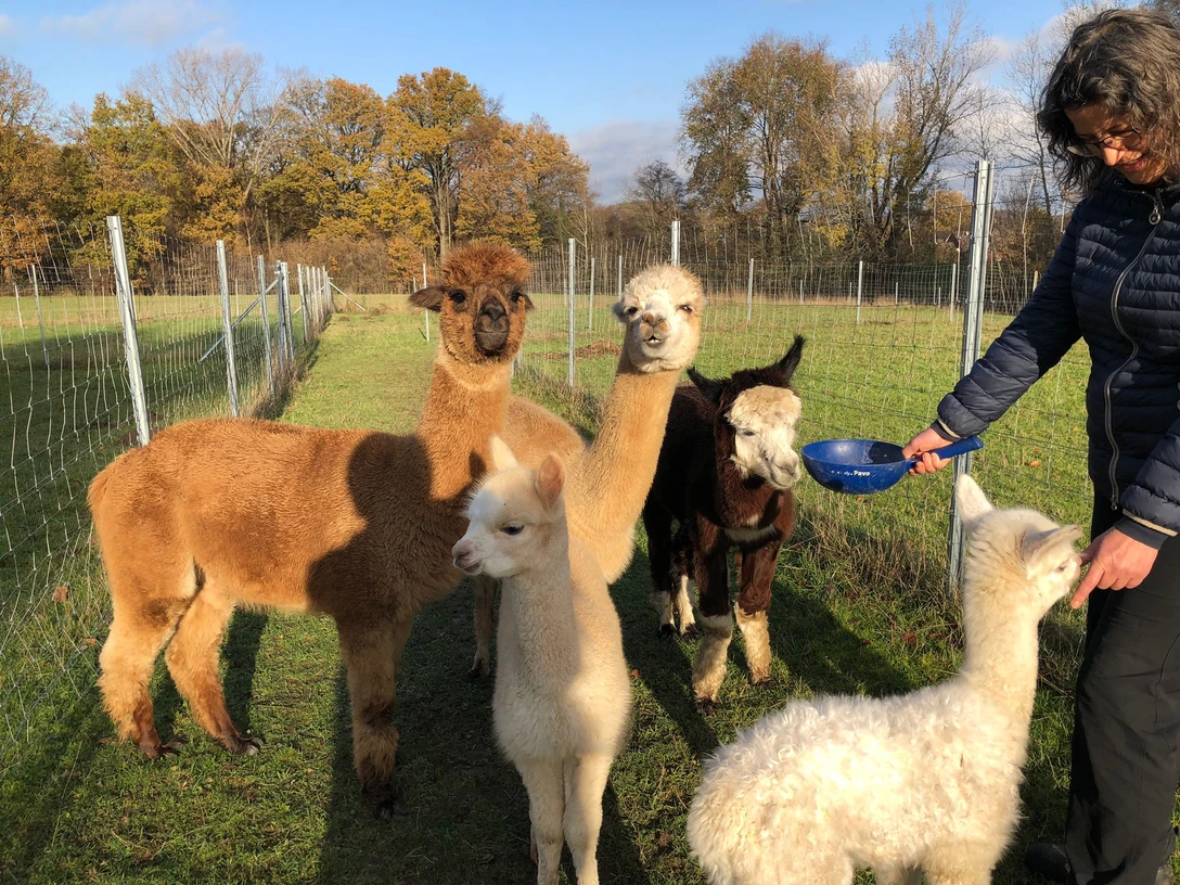 You will get to know the animals better and learn about the origin, husbandry and special features of the alpacas - Alpaca walk (1.5 to 2 hours).)