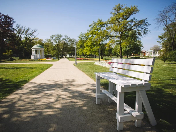 Use your next trip to the Bad Salzuflen spa gardens to take a break on one of our white and blue dangling benches. Children do it automatically: if they can't get their feet on the ground when sitting down, they start to dangle their legs. Sit still, they say - and we adults should also indulge in this exercise. Dangling opens the joint space slightly, relieves the pressure on the synovial fluid in the knees and reduces any swelling. The movement ensures that more synovial fluid is produced and the synovial fluid is distributed over the entire cartilage surface of the knee joint. This improves cartilage nutrition. And by loosening the legs, it relieves pressure on the head and shoulders. Alternate dangling promotes the interaction of both sides of the brain. The head is freed up for new ideas and thoughts.