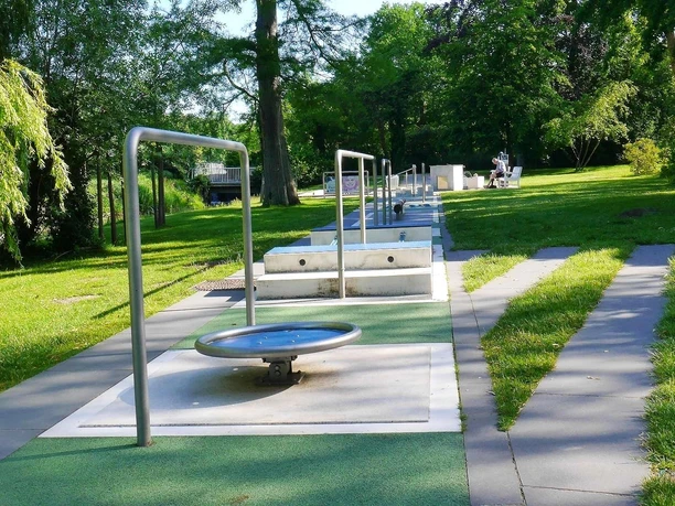 Walking mindfully and slowly on the barefoot path adventure trail is particularly suitable after treading water in the adjacent Kneipp footbath. To warm up your feet again, we recommend walking along the barefoot path. Coordination equipment, such as logs, blocks at different heights, etc., round off the experience.