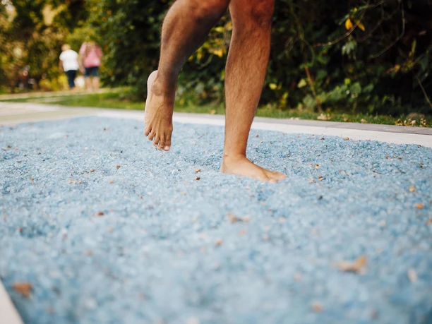 After a Kneipp footbath, walk over the various surfaces on the barefoot path and feel for a moment how the ground feels.