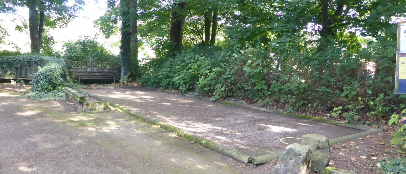 The surrounding trees provide shade and a shelter protects you from the rain. Information on the rules of the game is available as well as a scoreboard to keep an eye on the score. The "Boulefreunde Wehrden" use the facility for training on Tuesdays from 3-6 pm from March to October. Anyone interested is very welcome and should contact Friedhelm Tabaka (0173-7550081) or Michael Strumpen (0176-92109410) with any questions.