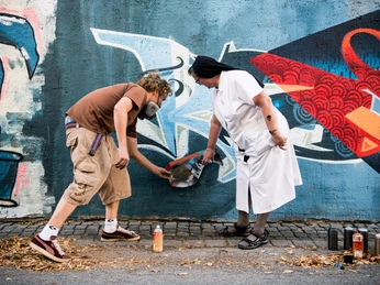 In the middle of Paderborn is a place that is hard to find in this form anywhere else in Germany: the Busdorfgalerie. A monastery wall over a hundred meters long, which was opened for graffiti art by the Sisters of Mercy of St. Vincent de Paul in 2018 - sending a strong signal for openness and dialogue.