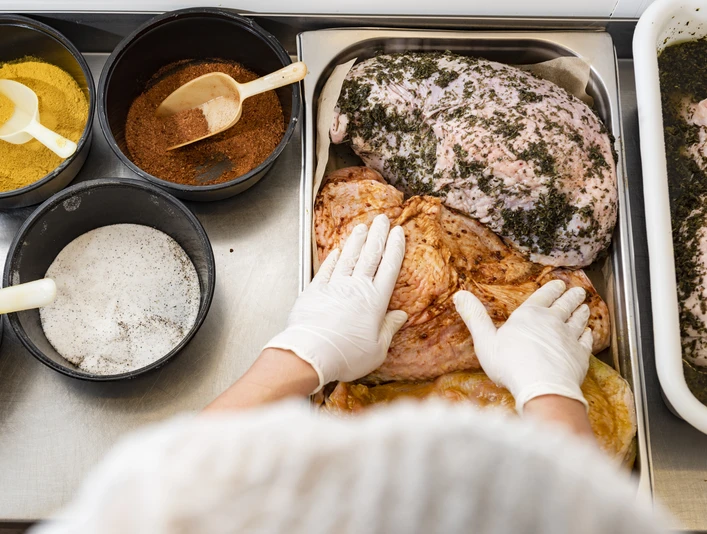 The farm store "Hedda's Bauernladen" sells turkey and chicken meat from its own farm, Hof Korte.