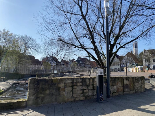 The city of Bad Salzuflen's cycle traffic officer, Sebastian Baving, will answer any questions about the bike service station.