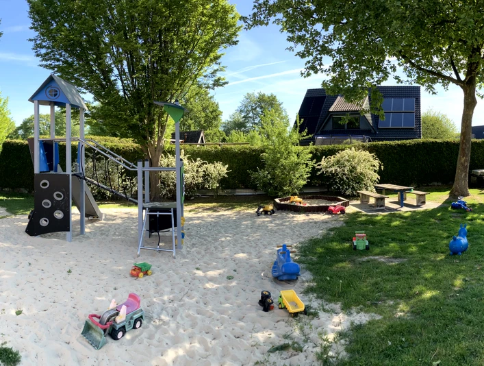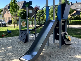 The playground is located in a residential area in the Sürenheide district. A fence and hedges border the playground, which has two entrances.