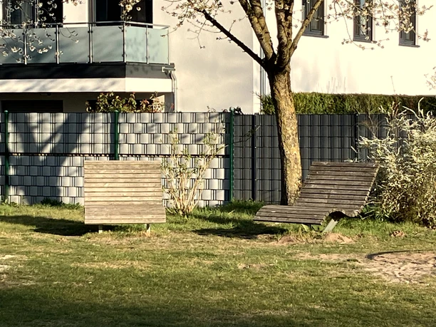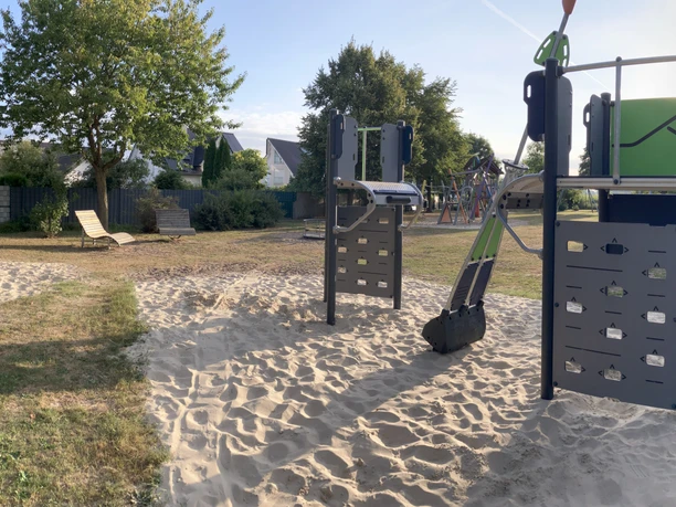 The playground is located in the Kaunitz district in a beautiful and quiet location on the outskirts of the village with a view of the surrounding fields and a small wooded area. The playground is surrounded by a fence and hedges and has an entrance. Parking is available in the residential area.