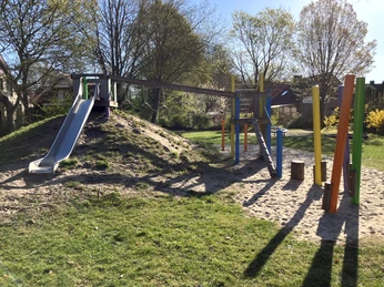 The playground is located on a footpath in a residential area and can only be reached on foot or by bike. Parking is available in the adjacent streets. The playground is surrounded by a fence and therefore has many access options between the trees from the footpath.