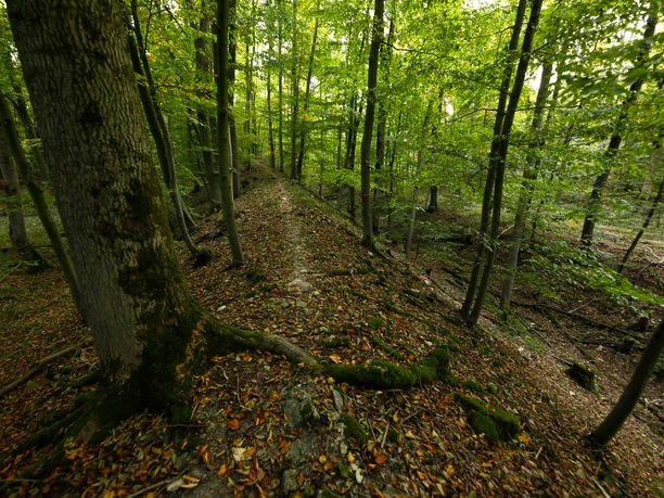 The castle is characterized by a main and outer bailey surrounded by mighty ramparts up to 5 m high and moats up to 8 m deep. The well-preserved ramparts and ditches cannot be precisely dated to this day. The rampart complex shows phases of development from the Iron Age (approx. 700 BC) with clear evidence of Celtic culture. It was repeatedly extended and expanded until around 1,200 AD. In 2004, information boards were installed, the content of which is based on the latest scientific findings, allowing visitors to experience the history of the "Hünenburg" at first hand.