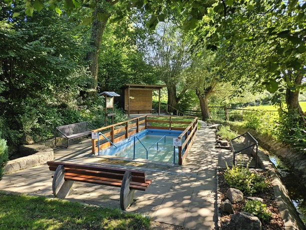 Next to the water treading pool, visitors can see the spring from which the pool is fed. This idyllic spot with its numerous benches invites you to picnic and linger.The pool is filled with water from spring to autumn.
