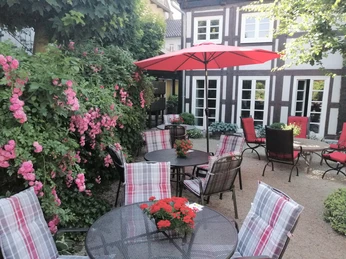 Enjoy coffee and cake in the ambience of a half-timbered house dating back to 1654. In summer, our guests can choose between the quiet café garden or the terrace in front of the store.
