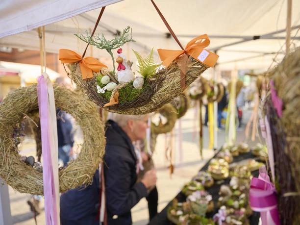 Colorful Easter decorations and all kinds of lovingly designed crafts for the garden and home make the spring market in Bad Oeynhausen a popular destination for a stroll through the town centre.